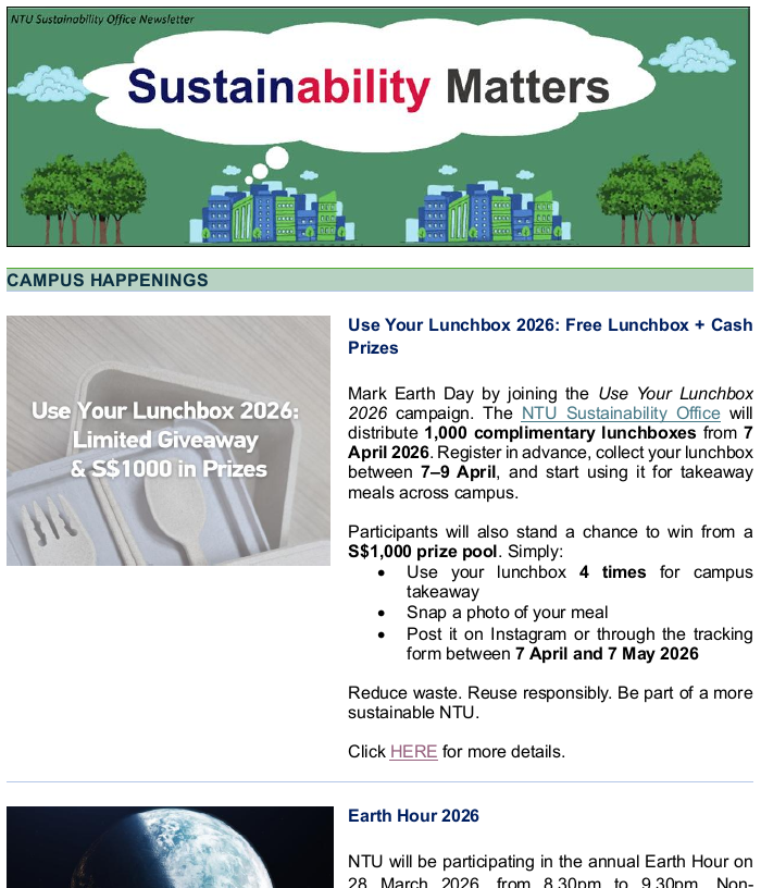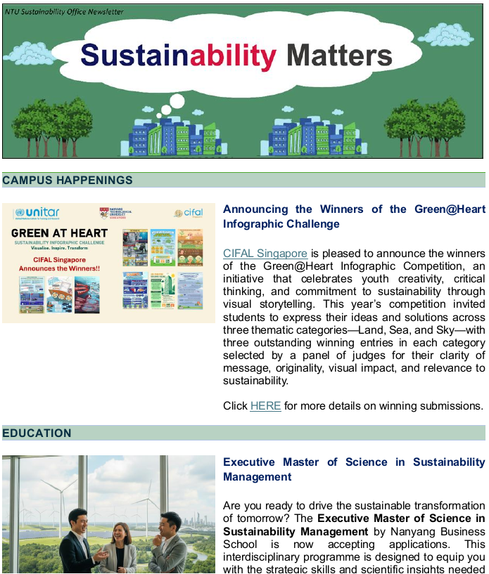 As a leading research-intensive university, NTU acknowledges the need and responsibility to respond to environmental, social and economic challenges. Our commitment to developing innovative solutions to global sustainability challenges runs deep. Discover NTU's commitment to United Nations' Sustainable Development Goals.