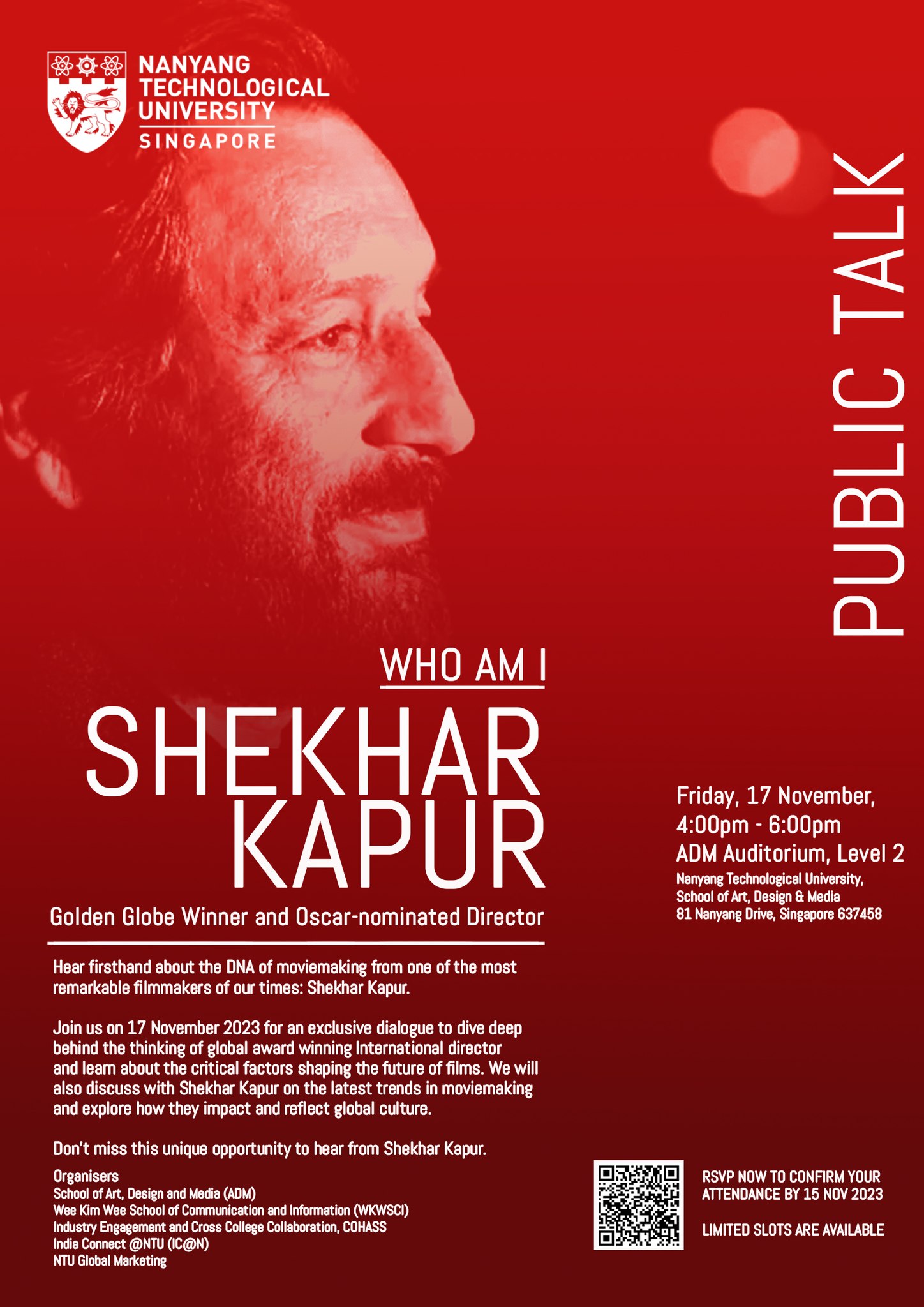 Don't miss this unique opportunity to hear from Shekhar Kapur