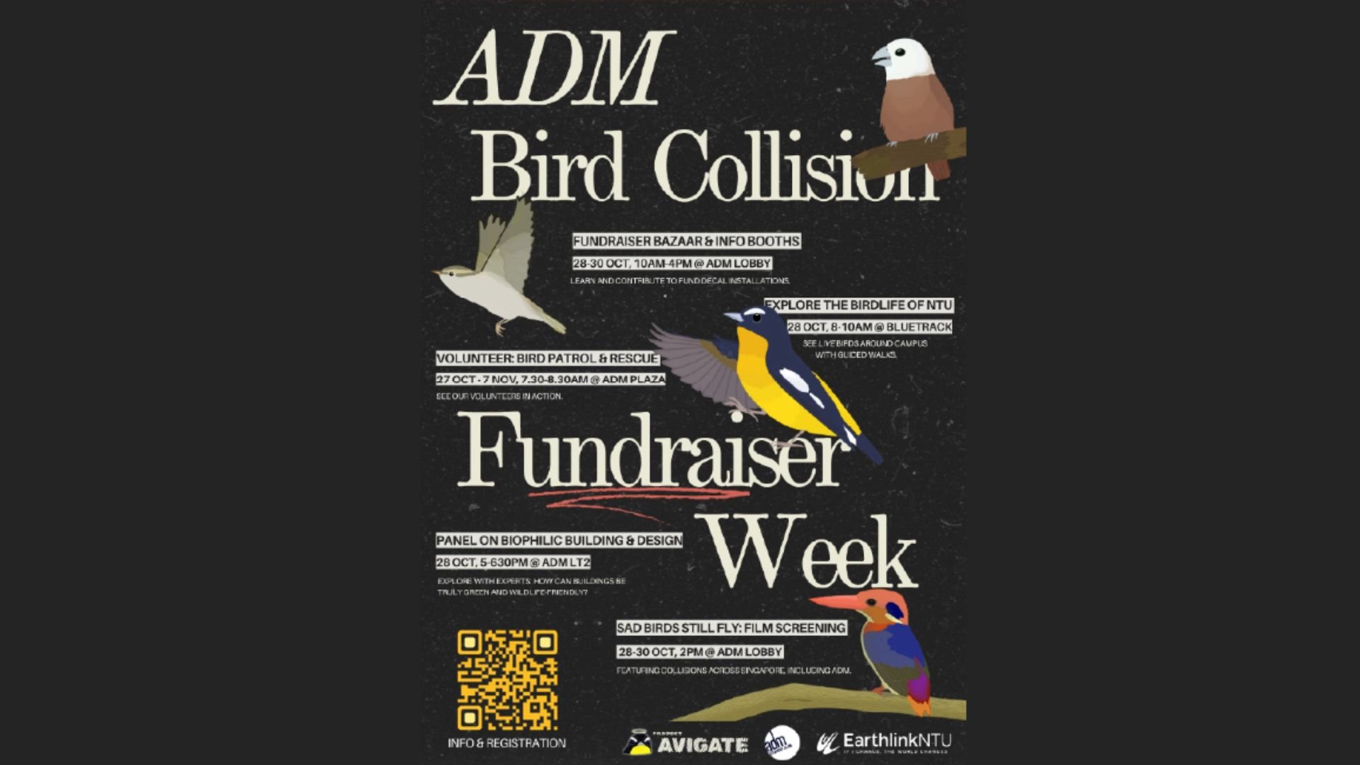 From exploring the birdlife of NTU to volunteering as bird patrol and rescue, from watching a film screening about birds to attending a panel on biophilic building and design - Play your part in ADM Bird Collision Fundraiser Week!