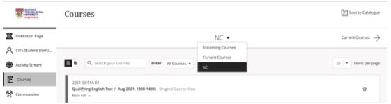 - Go to the NC (Non-Curriculum) section of the Courses page in NTULearn to locate the QET course you have been enrolled into.