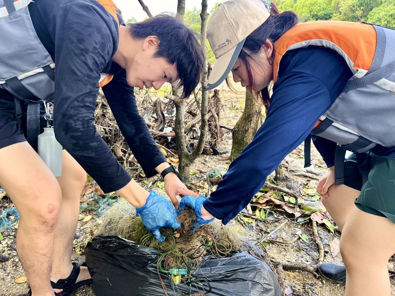 Li Xuan (right) led students in clearing marine debris from the mangroves along the Pasir Ris shoreline.