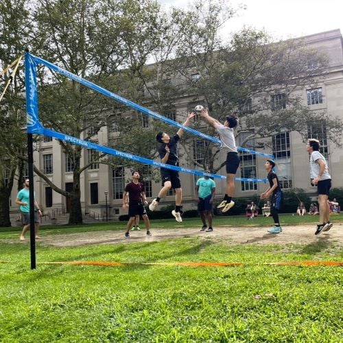 Leo playing in a volleyball tournament on the lawns of MIT, right next to his research lab.