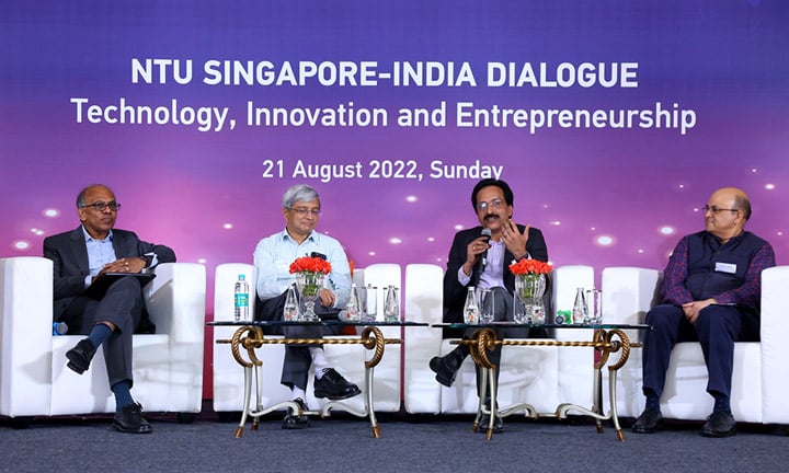 To facilitate an exchange of ideas for collaboration, NTU Singapore hosted the first-ever NTU Singapore-India Dialogue session on 21 August 2022. The event explored the critical themes of the transformation of education, research, and innovation in a post-pandemic world, and how Singapore and India could further strengthen the collaboration in the area of technopreneurship. More than 200 dignitaries, including prominent business and government leaders, academics, and distinguished NTU alumni, attended the event held at The Leela Palace Hotel, Bengaluru, India.