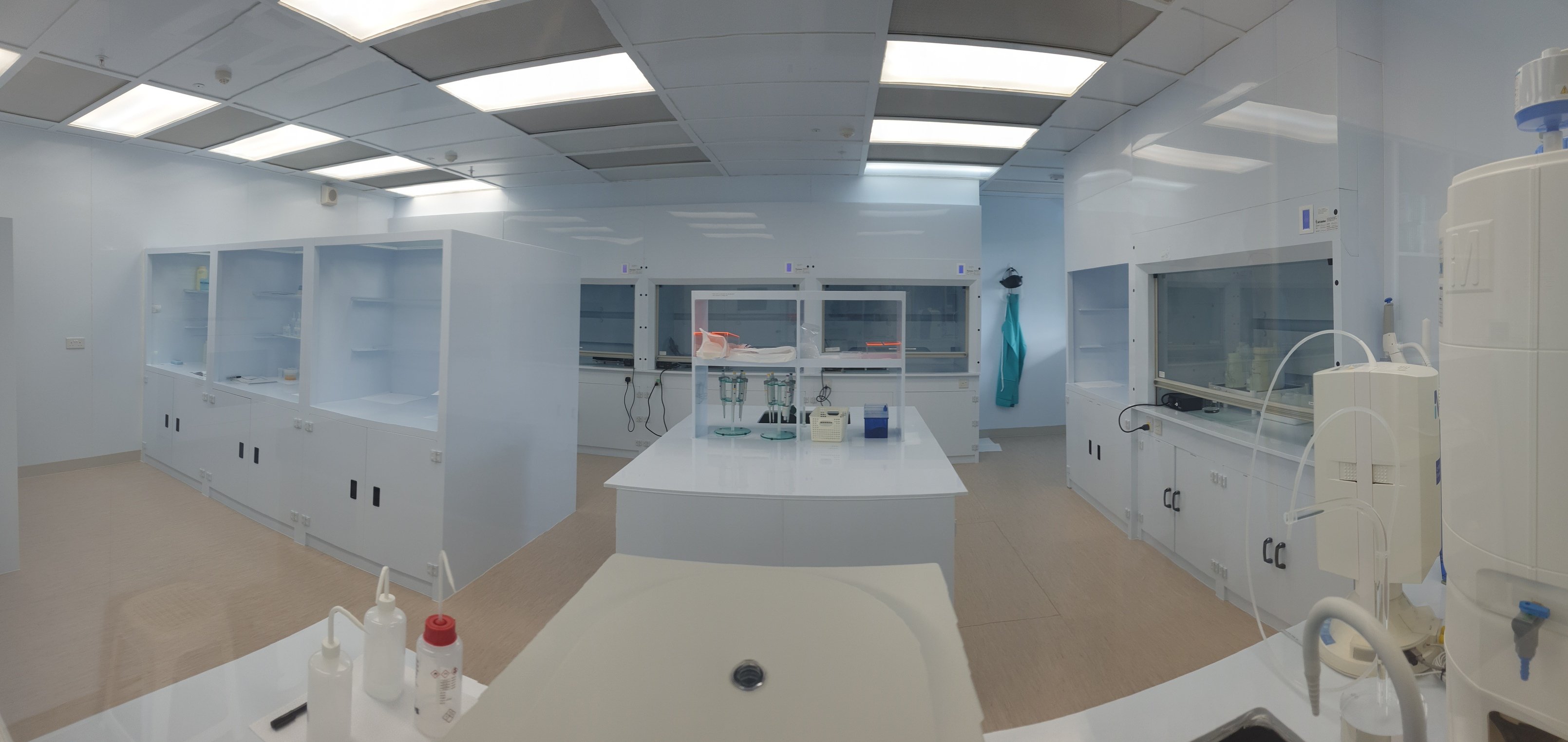 The main chemistry room contains of five fume hoods, one horizontal laminar flow workstation, and six working benches, for sample digestions, chromatographic separations, trace element purification, and other procedures.