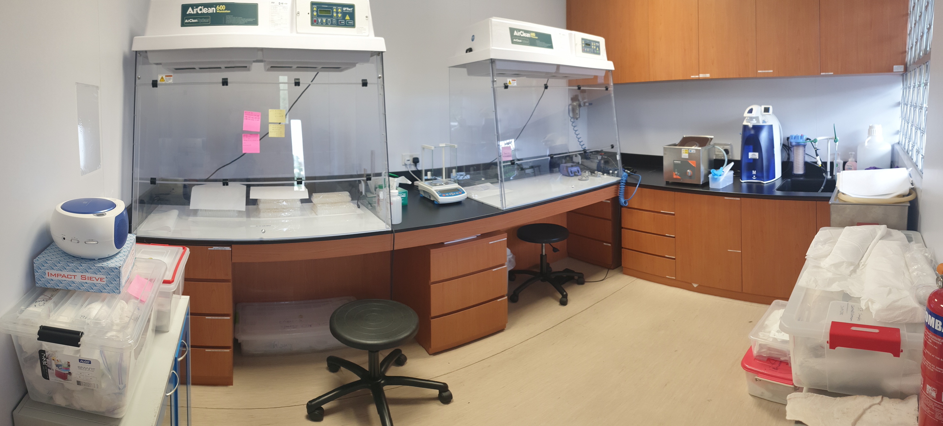 The laboratory is primarily for the drilling and weighing of carbonate samples. Facilities include an automated micro-drilling system, a manual micro-drill, weighing station and a microscope with photography capabilities