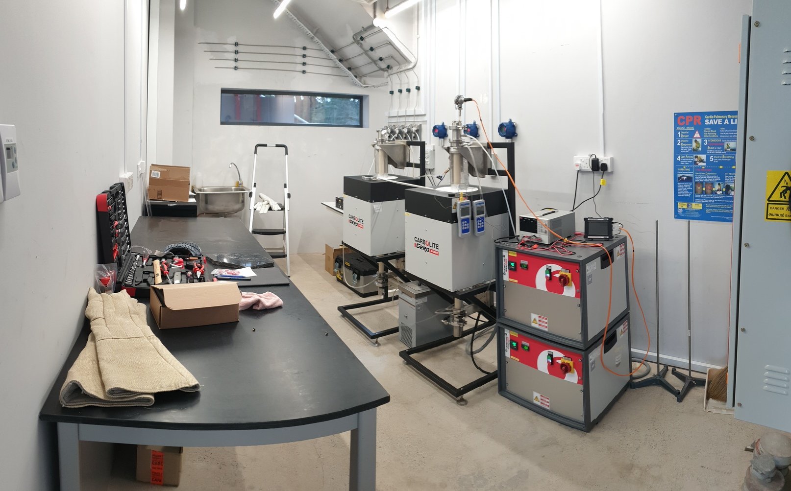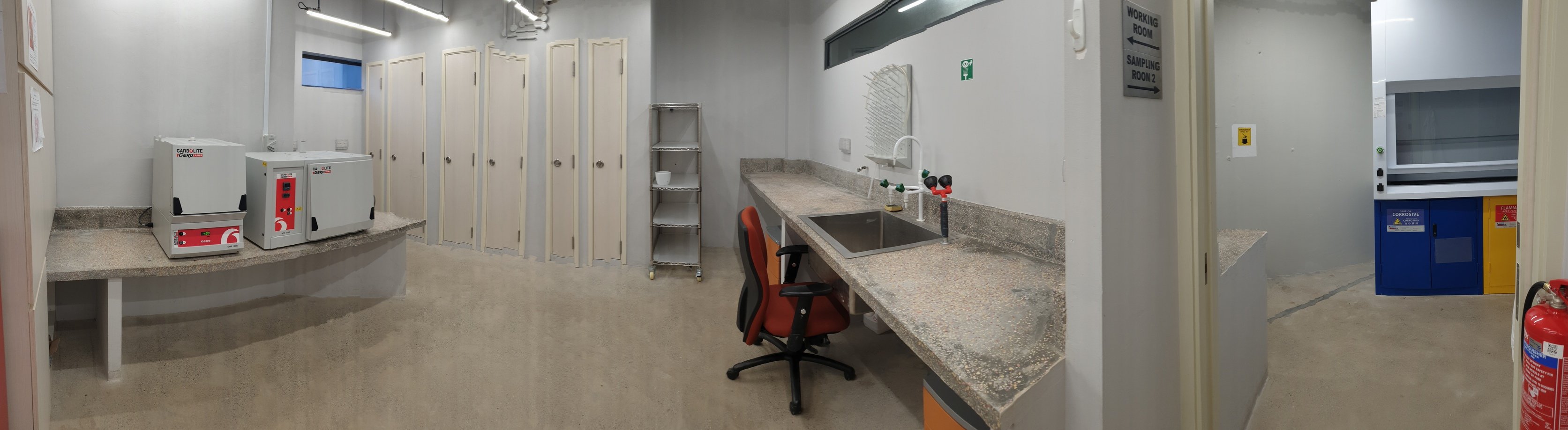 The preparatory lab designed to conduct petrological investigations contains rock-crushing and cutting equipment to prepare rock samples. Facilities in this lab also include high-temperature muffle furnaces as well as one-atmosphere gas-mixing furnaces allows material studies and synthesis under controlled oxygen atmosphere across wide range of temperatures and up to 1700degC