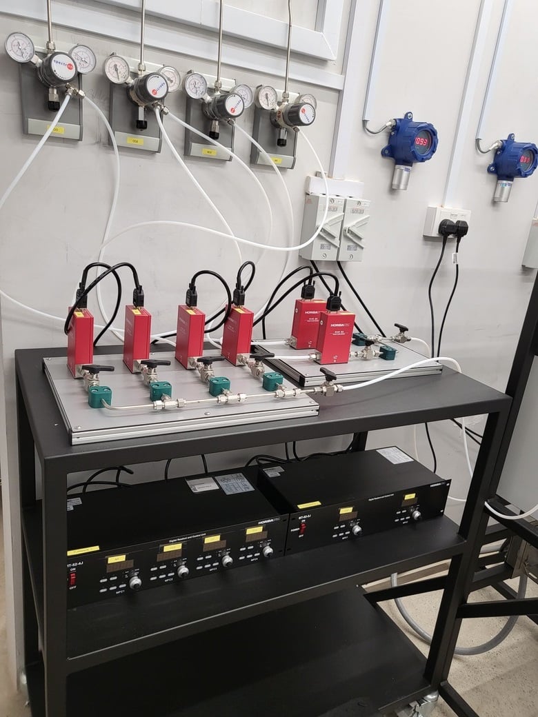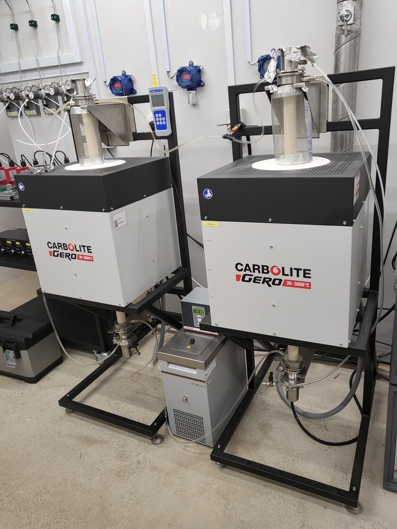 The vertical tube gas-mixing furnaces operate up to max 1600°C and are equipped with various gas mixtures including CO/CO2/SO2/Ar to allow adjusting oxygen atmosphere for wide range of experimental applications. The in situ oxygen fugacity is measured and monitored by an oxygen-specific solid electrolyte. The set-up is indispensable for synthesis of starting materials and redox-sensitive materials reactions, and thus applicable for different environments including extreme conditions