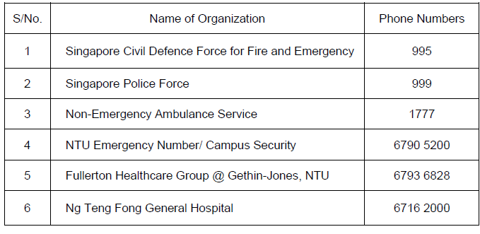 Important Emergency Contactable Phone numbers