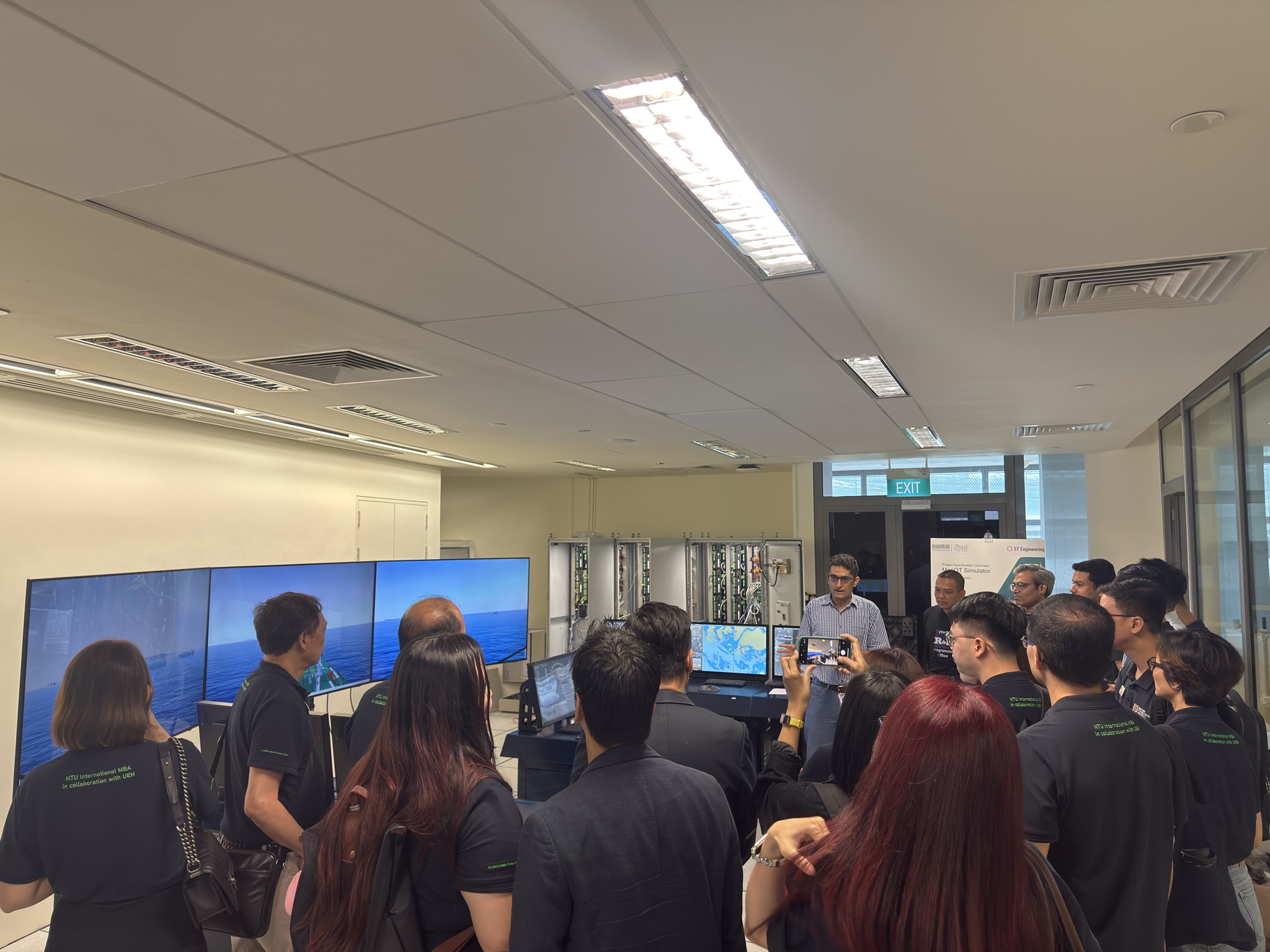 The International MBA students being briefed on one of the several world-class testbeds and training platforms hosted by iTrust. These testbeds and training platforms together constitute a one-of-a kind facility for research and training in the design of safe and secure large-scale cyber-physical systems