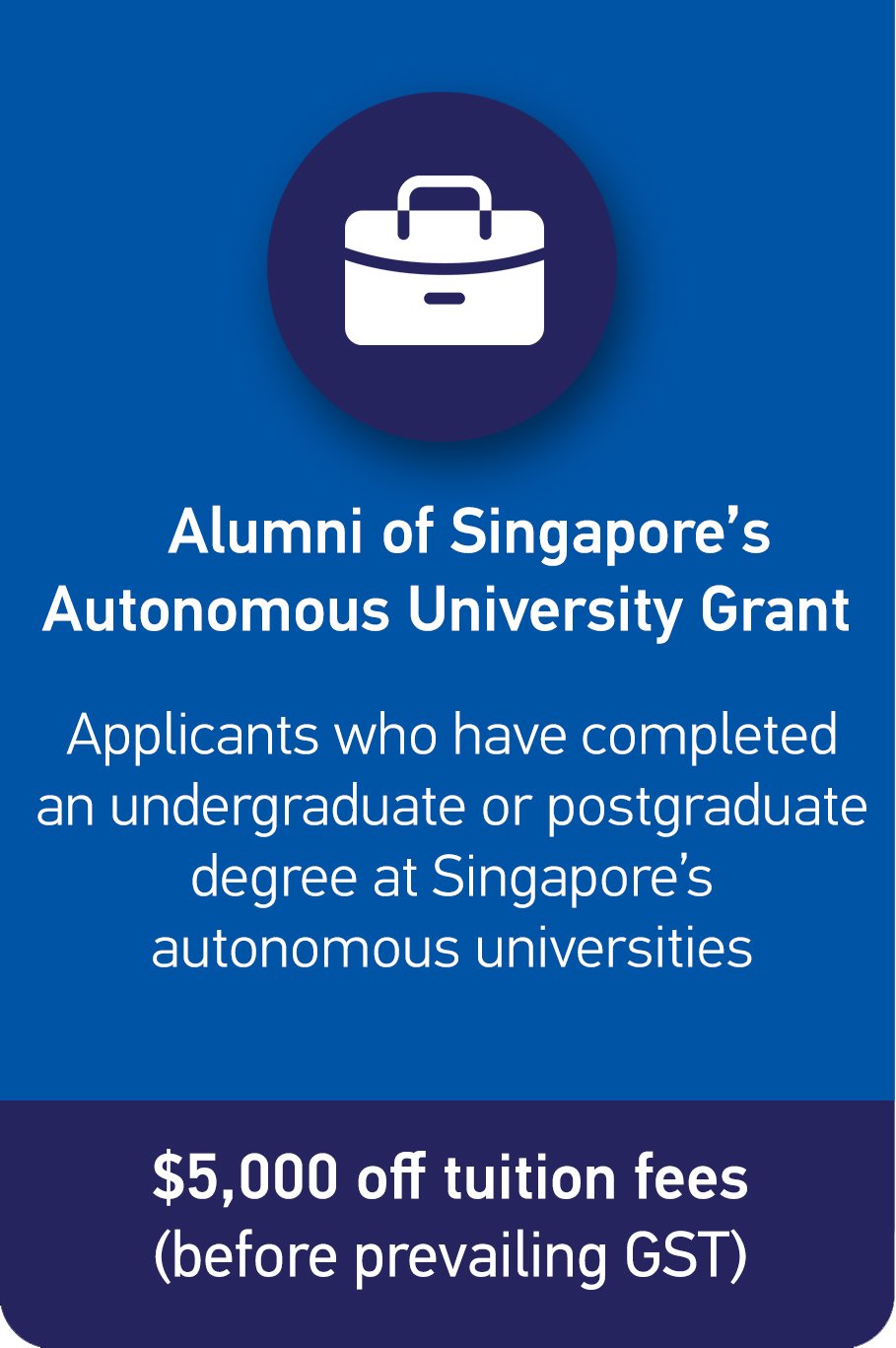 This is a one-time grant of $5,000 off tuition fees (before prevailing GST). This grant applies strictly to tuition fees and does not cover other programme-related costs
