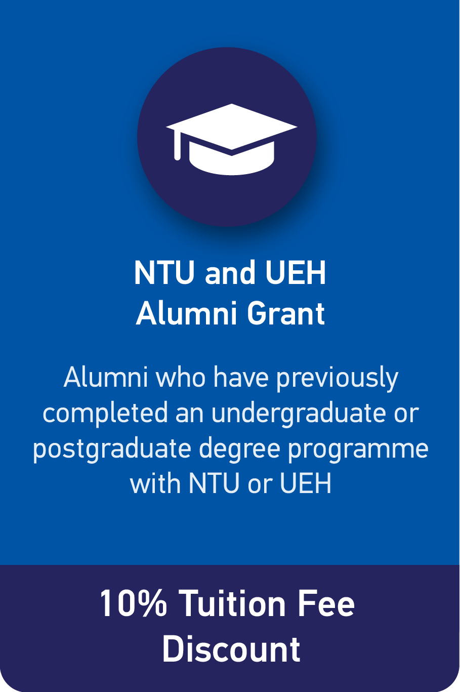 - The applicant has previously completed an undergraduate or postgraduate degree programme with Nanyang Technological University (NTU) or University of Economics Ho Chi Minh City (UEH).