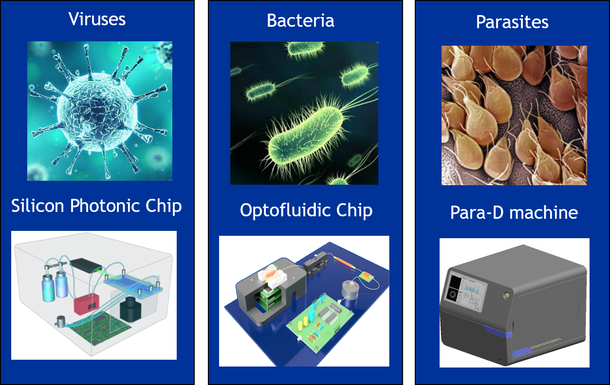 Research in Bio-devices program focuses on pathogen (viruses, bacteria, and parasities) online-detection, optiofluidic devices, novel biosensors and smart bioanalysis.