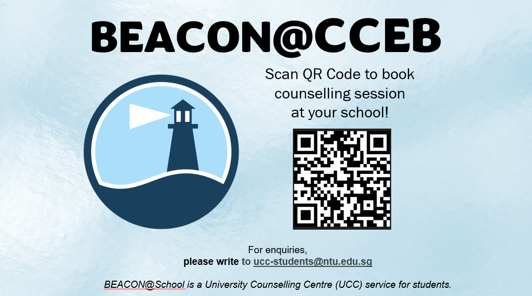 BEACON@CCEB is a satellite counselling service provided by the University Counselling Centre, designed to make professional counselling more accessible and convenient for students.