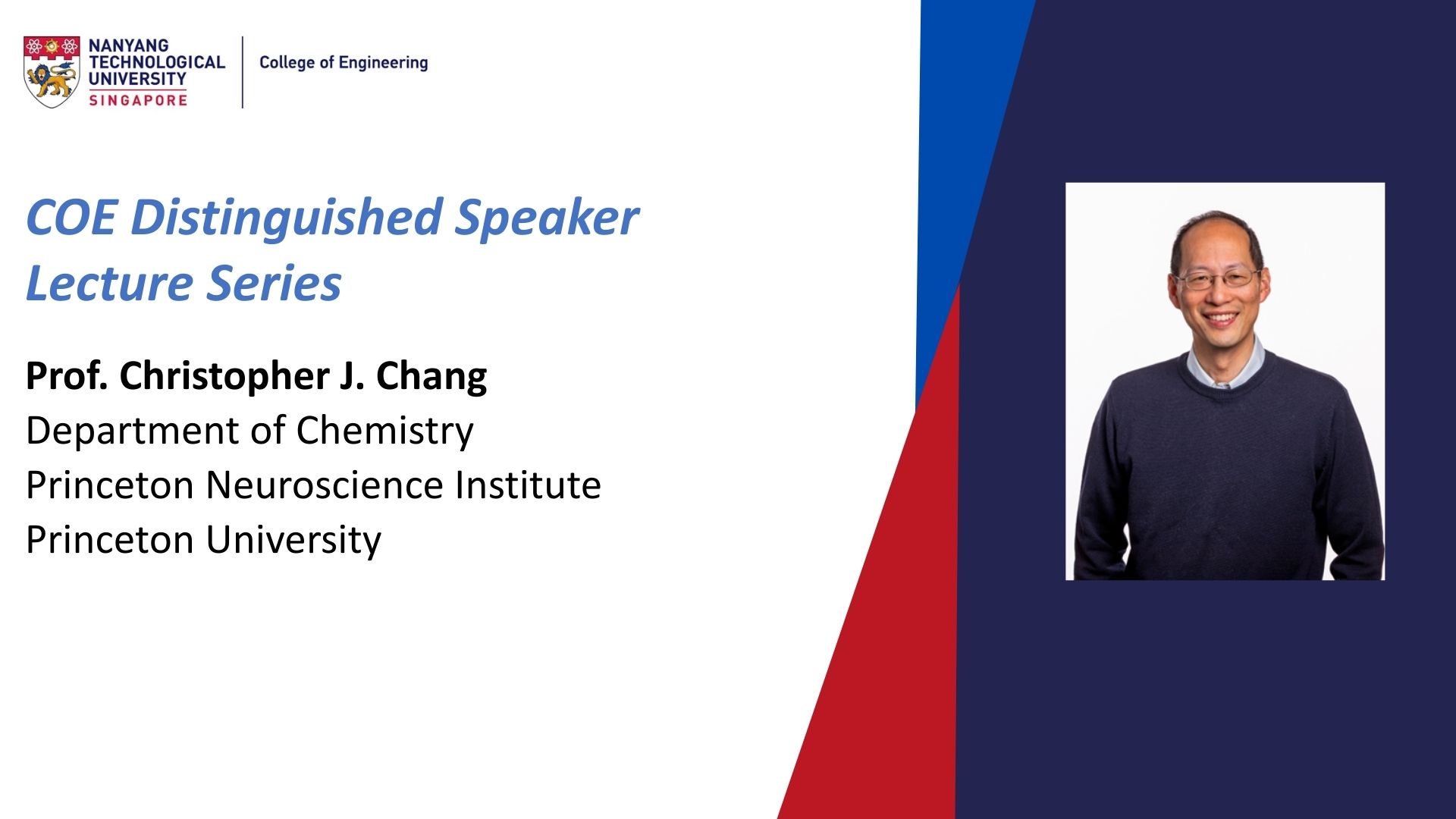 Professor Christopher J. Chang is a pioneer in the fields of bioinorganic chemistry and chemical biology. In 2024, he joined Princeton University as the Edward and Virginia Taylor Professor of Bioorganic Chemistry. Previously, he spent two decades at the University of California, Berkeley, where he held the Class of 1942 Chair. Professor Chang earned his B.S. and M.S. from Caltech, a Ph.D. with Prof. Daniel G. Nocera at MIT, and completed postdoctoral training with Prof. Stephen J. Lippard at MIT. His group is interested in studying the chemistry and biology of the elements, advancing new concepts in imaging, proteomics, drug discovery, and catalysis. He has been leading the development of "activity-based sensing" as a general platform to identify transition metals, reactive oxygen species, and one-carbon units as new classes of single-atom signals for allosteric regulation of protein function. This has revealed unique metal and redox disease vulnerabilities as targets for innovative drug discovery efforts to treat neurodegeneration, cancer, and metabolic disorders. Beyond his research, he currently serves as the Editor-in-Chief of Accounts of Chemical Research. His contributions have been recognized with numerous awards, including the Guggenheim Fellowship (2021), Humboldt Research Award (2020), Blavatnik National Award in Chemistry (2015), and election as Fellow of the American Academy of Arts and Sciences (2017). Notably, Professor Chang has mentored over 150 researchers, dozens of whom now lead their own academic laboratories worldwide.