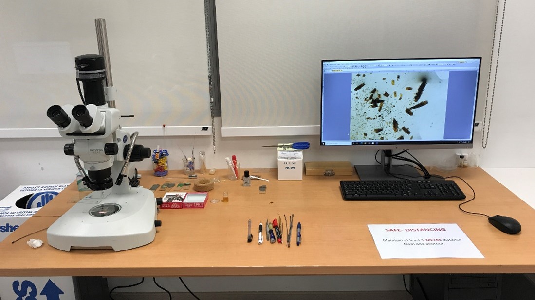 The lab houses an Olympus SZX2 polarizing microscope coupled with an Olympus DP73 digital camera for crystal selecting and mounting.
