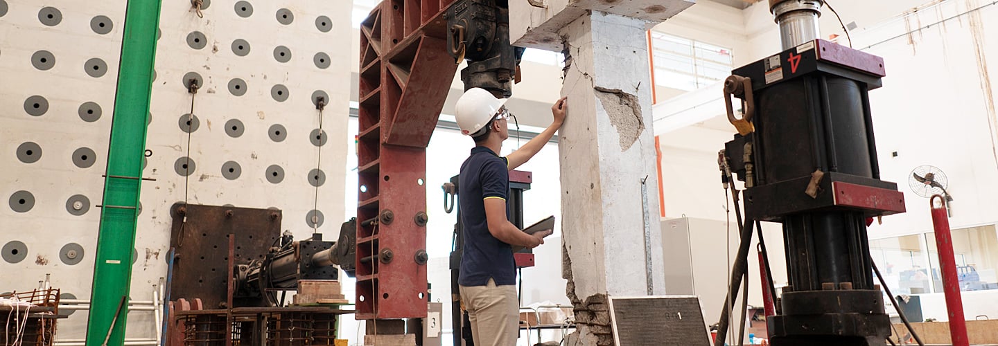 The Construction Technology Laboratory is located at basement 5 of the School of Civil and Environmental Engineering. It consist of a 24m x 24m strong floor, a construction annex which houses a 250 sq metre strong floor and a material testing room. The laboratory supports the School’s teaching and research needs. It is equipped to conduct a full range of tests on construction materials as well as full scaled building component test.