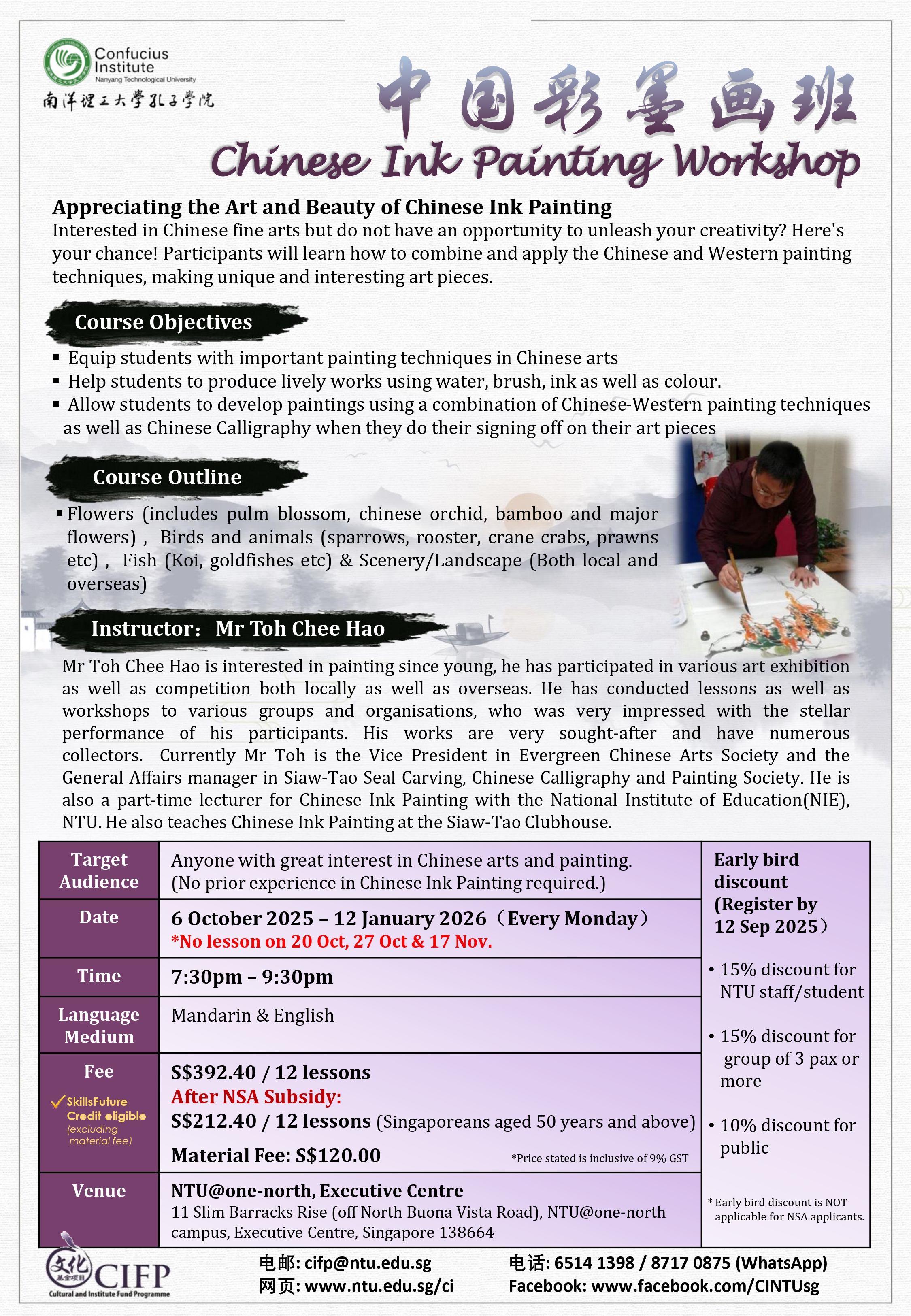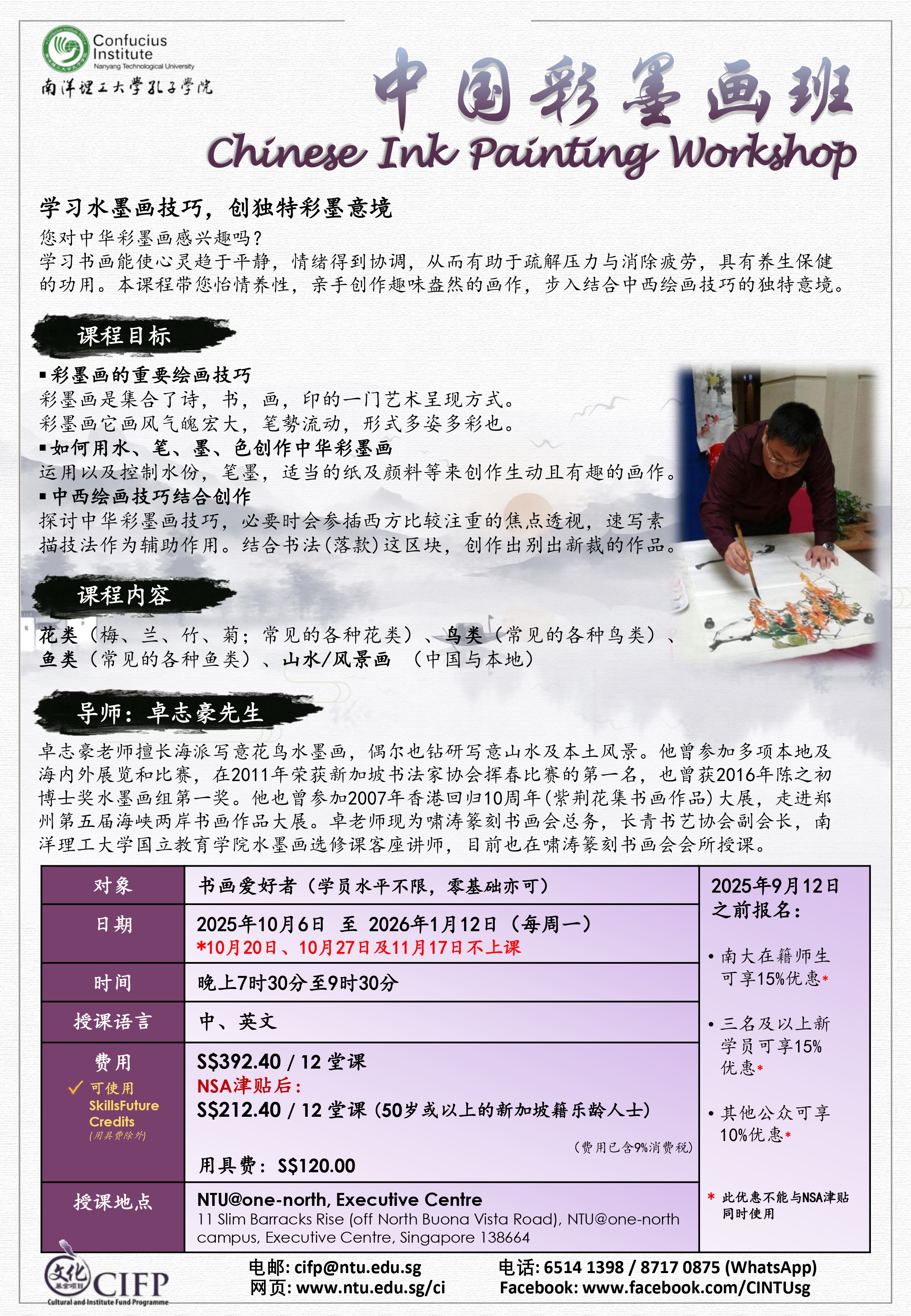 中国彩墨画班 成人班 (周一班)Chinese Ink Painting Workshop for Adults (Monday Class)