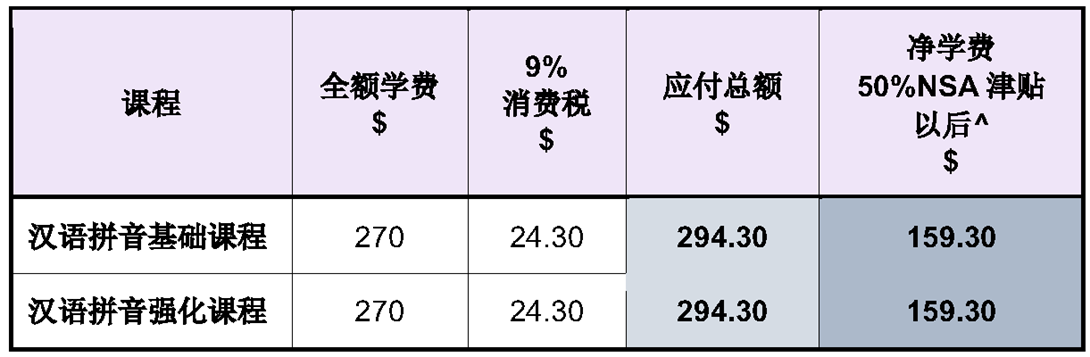 *南洋理工大学孔子学院保留合并、更换和取消课程的权利。请电邮或致电本院确认开班日期。
