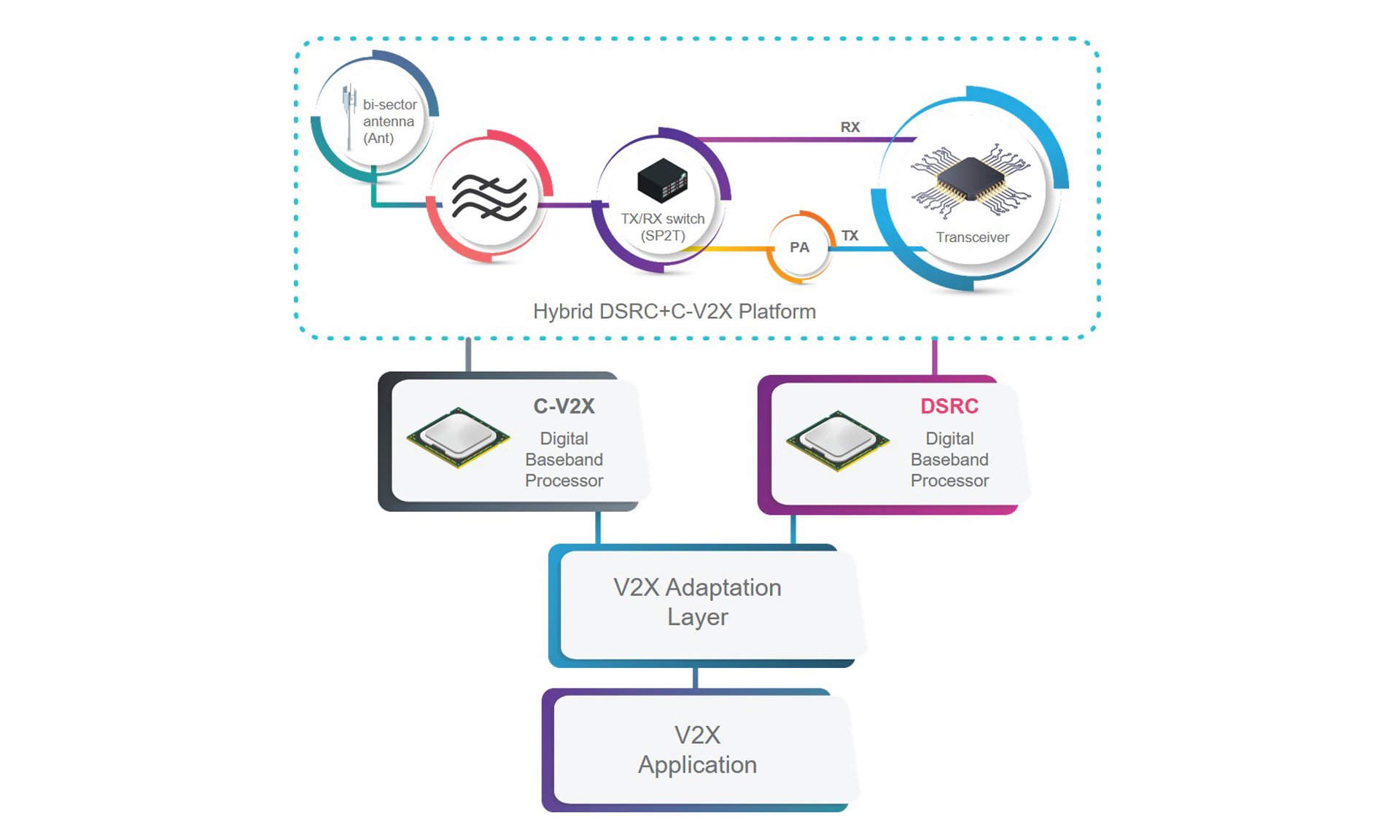 The hybrid transceiver provides customers with a flexible selection between DSRC and C-V2X regardless of the V2X technology deployed in that region.
