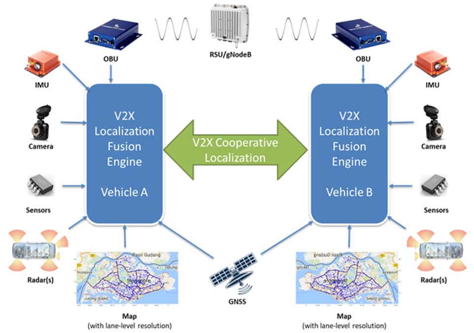 - Cooperation between multiple vehicles and RSUs via V2X information exchange to cooperatively perform vehicular localization.