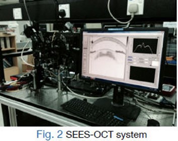 In order to meet the clinical need of subcellular resolution medical imaging, we have developed a sub-micrometre resolution OCT imaging system for imaging of the anterior segment (AS) of the eye. Our novel device provides more than ten times higher resolution than the state-ofthe-art commercial devices (Fig. 1). We found that endothelial cells in rat corneal can be visualized clearly with our AS imaging device, the first demonstration of such a finding best known to us. Endothelial damage is associated with many corneal diseases, and monitoring endothelial survival is critical to evaluate corneal transplantation.