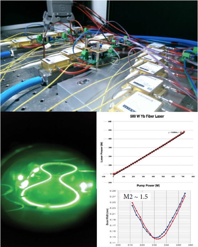 Two years ago, the fiber laser team has been working on the high power fiber laser from scratch. Not only do we focus on the optical properties and behavior of the fiber laser, we also emphasise on the thermal management of the system. We have recently achieved ~ 500W laser power at ~ 1um with good beam quality, i.e. M2 of ~ 1.5, and we will continue to move forward to the next higher power level with good beam quality.