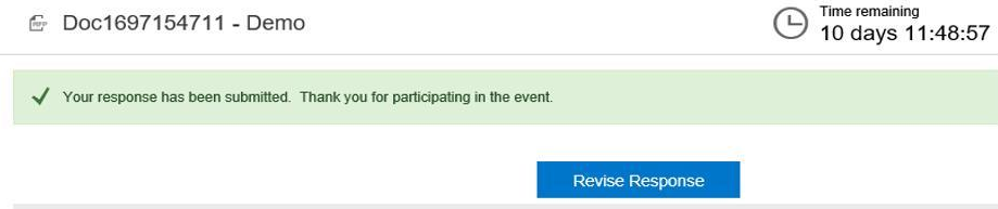 Meanwhile, you will see the option of “Revise Response” which will allow you to revise your submitted bids, instead of “Intend to Participate” when navigate to the sourcing event.