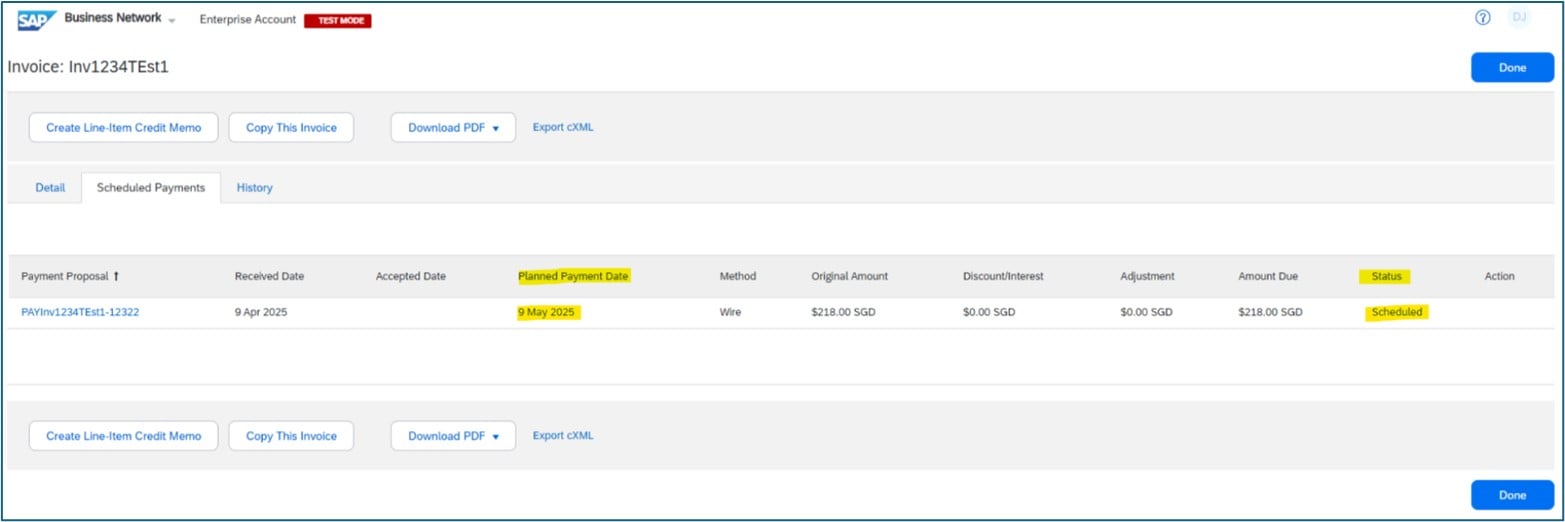 - The 'Payment net due date' for submitted invoices will be displayed.