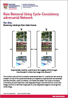 | HENRY NG SIONG HOCK Rain Removal Using Cycle-Consistency adversarial Network | HU QINGYAO Eye Gaze Estimation Using Deep Learning | JEREMY LIAN HAOZHAN Music Alchemy |