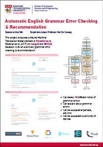 | ARKAR MIN Automatic English Grammar Error Checking & Recommendation | BENJAMIN TAN JIN BOON Development of Research Project Reporting Framework | CHIA CHEOW EE NICHOLAS Blockchain with IoT - Decentralized Energy Trading |