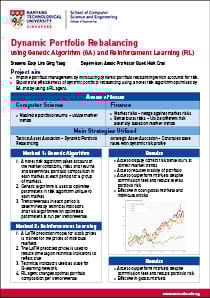 | LIM QING YANG EDDY Dynamic Portfolio Rebalancing using Genetic Algorithm (GA) and Reinforcement Learning (RL) | ONG YOU PING Mobile Application for Music Synthesis Using Tangible Blocks | PEH ZHI XUAN An Augmented Virtuality Approach to 3D Teleconferencing |