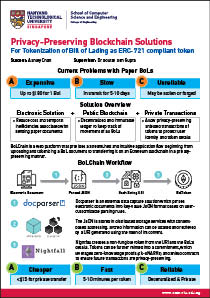 | ARYA SREEKUMAR Intelligent Robot Navigation - For elderly assistance | ASHLEY CHAN CHUAN JOO Privacy-Preserving Blockchain Solutions | Benjamin Chua Rui Hern Development of a Microservice For Testing Software Composition Analysis Tools |