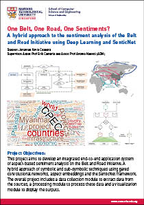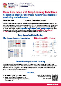 | JONATHAN KEVIN CHANDRA One Belt, One Road, One Sentiments | KAN ZI JUN Music Generation with Deep Learning Techniques | KENNARD CHAN YANTING Robust Speech Emotion Recognition |