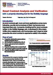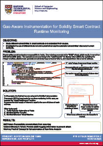 | ROYSTON BEH ZHI YANG Gas – Aware Instrumentation for Solidity Smart Contract Runtime Monitoring | RUSSELL CHUA KUI HON FAQ Chatbot Web Framework | SHI YUXIN Deep learning in Medical Images |