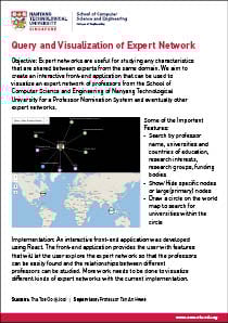 | TEO TIAN SHUN KENNETH Explainable Graph Classification | TERENCE CHAN CHIN LENG Developing AI Attacks/Defenses | THA TOE OO @JODI Query and Visualization of Expert Network |