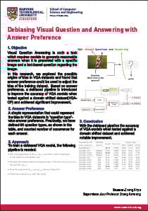| ZHANG KAISHUO Subject Adaptation with Deep ConvNet for EEG-based Motor Imagery Classification | ZHANG XINYE Debiasing Visual Question and Answering with Answer Preference | LIM ZHE XIAN CHADD Computer Vision for Business Intelligence |