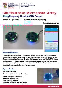 | Toh Ting Yu Darren Multipurpose Microphone Array with Raspberry Pi and MATRIX Creator | Wee Bing Chuan Python Learning Platform | Wu HaoRan The Augmented Human – Seeing Sounds |