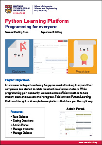 | WAYNE ONG CHAN CHI Intelligent 3D Modelling Using Evolution Principle | WONG SENG WEE Deploying Speech Recognition System using High Availability and Scalability Kubernetes Cluster | WU HAO Dota2 Pre-game Prediction |