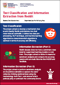 | Ahmad Mustaqim Bin Jumat Agent-based modelling framework for evacuation planning | Ang Qi Xuan Graph Neural Networks with Knowledge Graph | David Ryosuke Harui Text Classification and Information Extraction from Reddit |