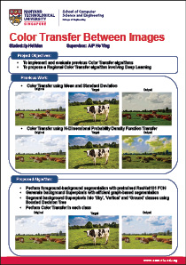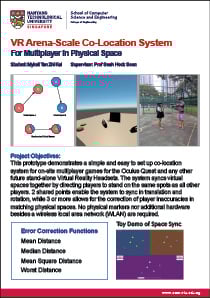 | HUANG PENG Machine Learning for Money Laundering Detection | Ip Hei Man Color Transfer Between Images | Mykell Tan Zhi Kai A VR Arena-scale Co-location System for Multiplayer in Physical Space |