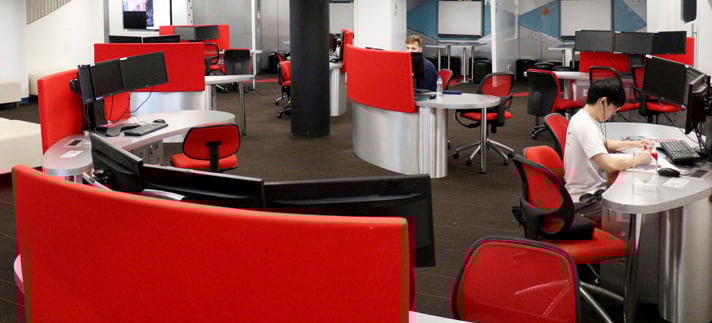 Highlights: A variety of collaborative learning spaces, exhibition spaces, quiet and wellbeing spaces, high-end computers, recording room.