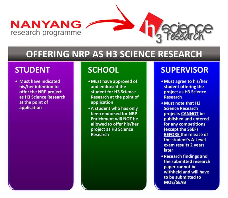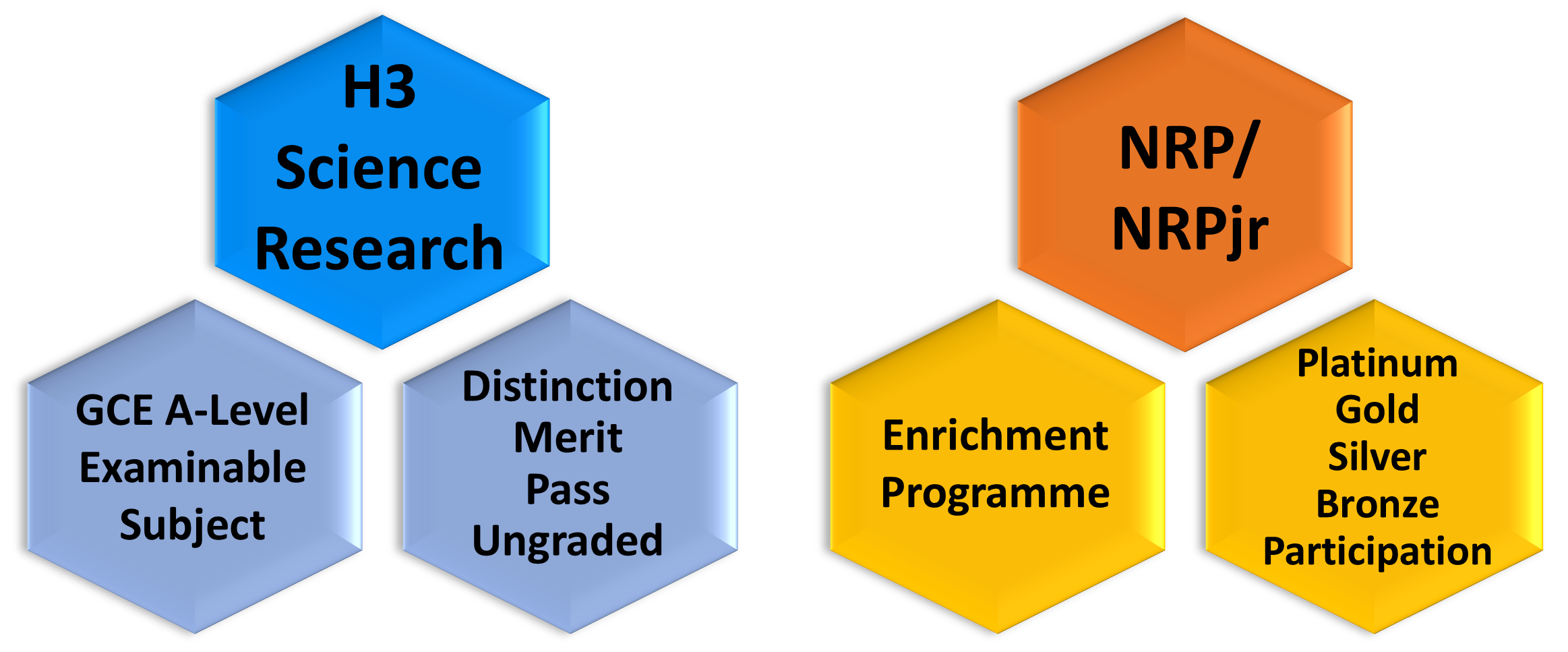 JC1 and Year 5 students who are doing the GCE A-Level syllabus may opt to offer their NRP project as an H3 Science Research project.