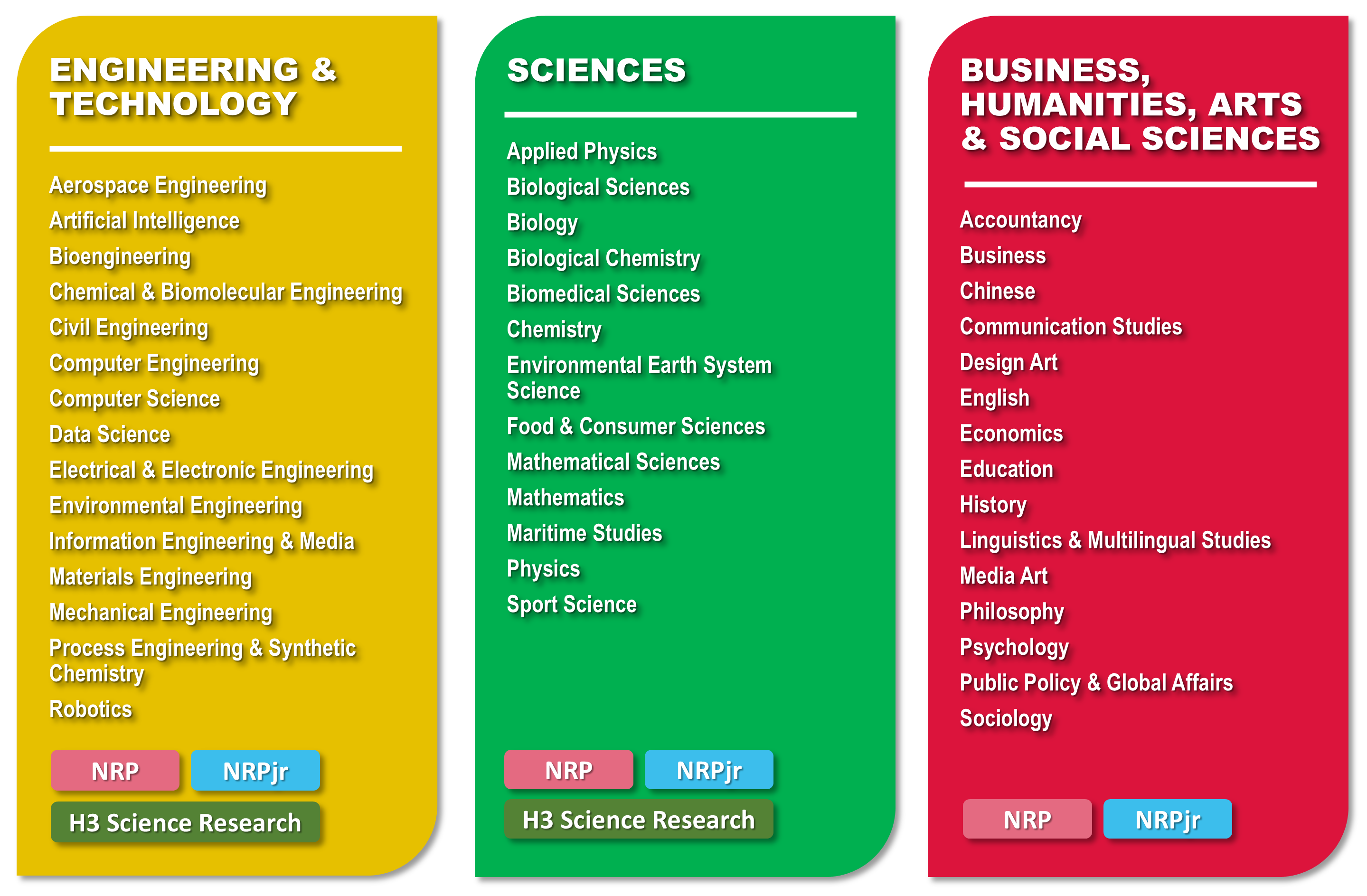 Only projects that fall under the Engineering and Sciences categories can be offered as H3 Science Research. Projects that can be offered as H3 Science Research are clearly denoted in the Project Synopses.