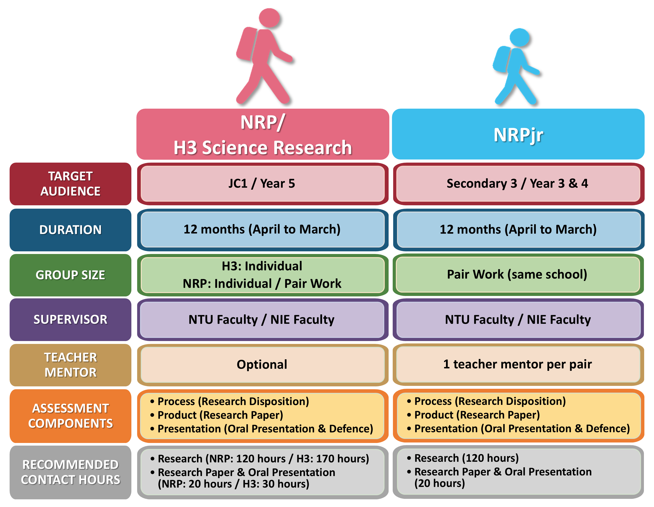 2) Who is eligible to apply for the NRP? Application is open to JC1 and Year 5 students. Do check with your NRP Teacher Coordinator if you meet your school's criteria to embark on the NRP journey. |