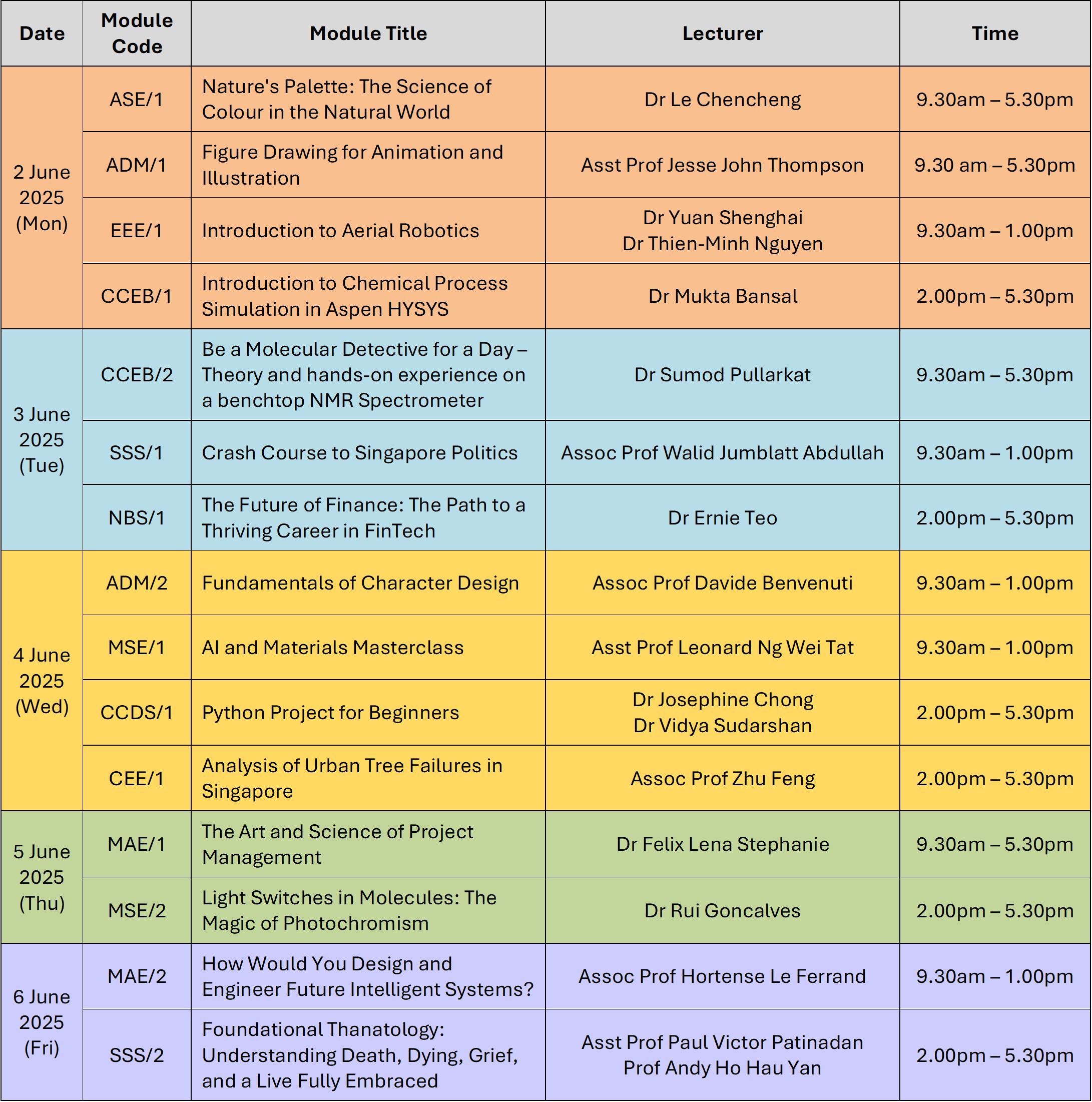 seeNTU 2025 runs from 2 Jun - 6 Jun 2025. A total of 15 modules will be conducted over the 5 days.