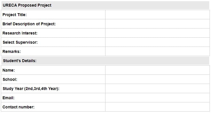 URECA eligible student is required to complete the student project proposal template through a self-proposed URECA research project system, select a supervisor from any school and submit the project to the selected professor.