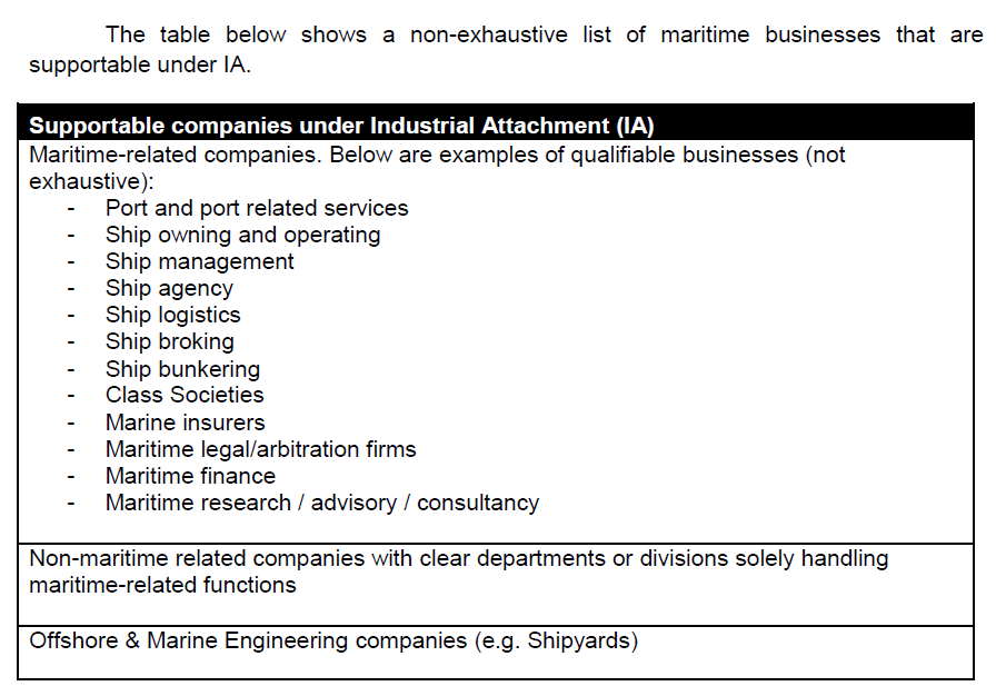 4) Participating in one of these approved internship programs in a maritime-related business entity except MPA which the top-up allowance has already been included in the monthly salary: