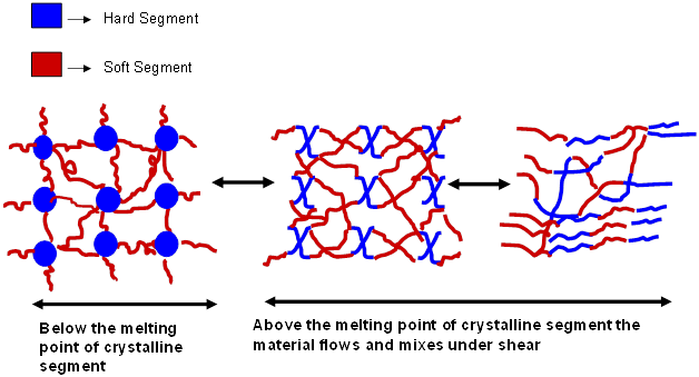 Research efforts have been directed at copolymerizing crystalline hard energetic polymer segments along with the soft energetic polymer backbone to improve the mechanical and performance properties. The crystalline hard segments are made up of Poly Bis Azido Methyl Oxetane (BAMO) units. Such materials result in energetic thermoplastic elastomers (ETPE’s). At room temperature the hard segments form physical crosslinks with the amorphous segments. The crystalline component functions as a thermally stable segment which melts and flows under shear. Thus ETPE’s could be melt cast, allows good processing flexibility and completely eliminates the use of chemical crosslinking agents.