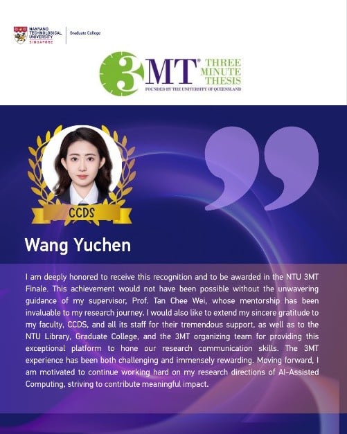 - Wang Yuchen (College of Computing and Data Science) – Second Place
