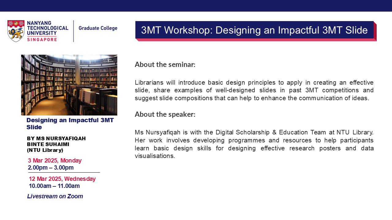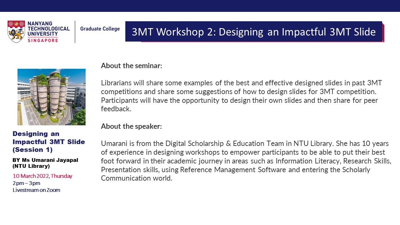 Title: 3MT Workshop 2: Designing an Impactful 3MT Slide (Session 1)